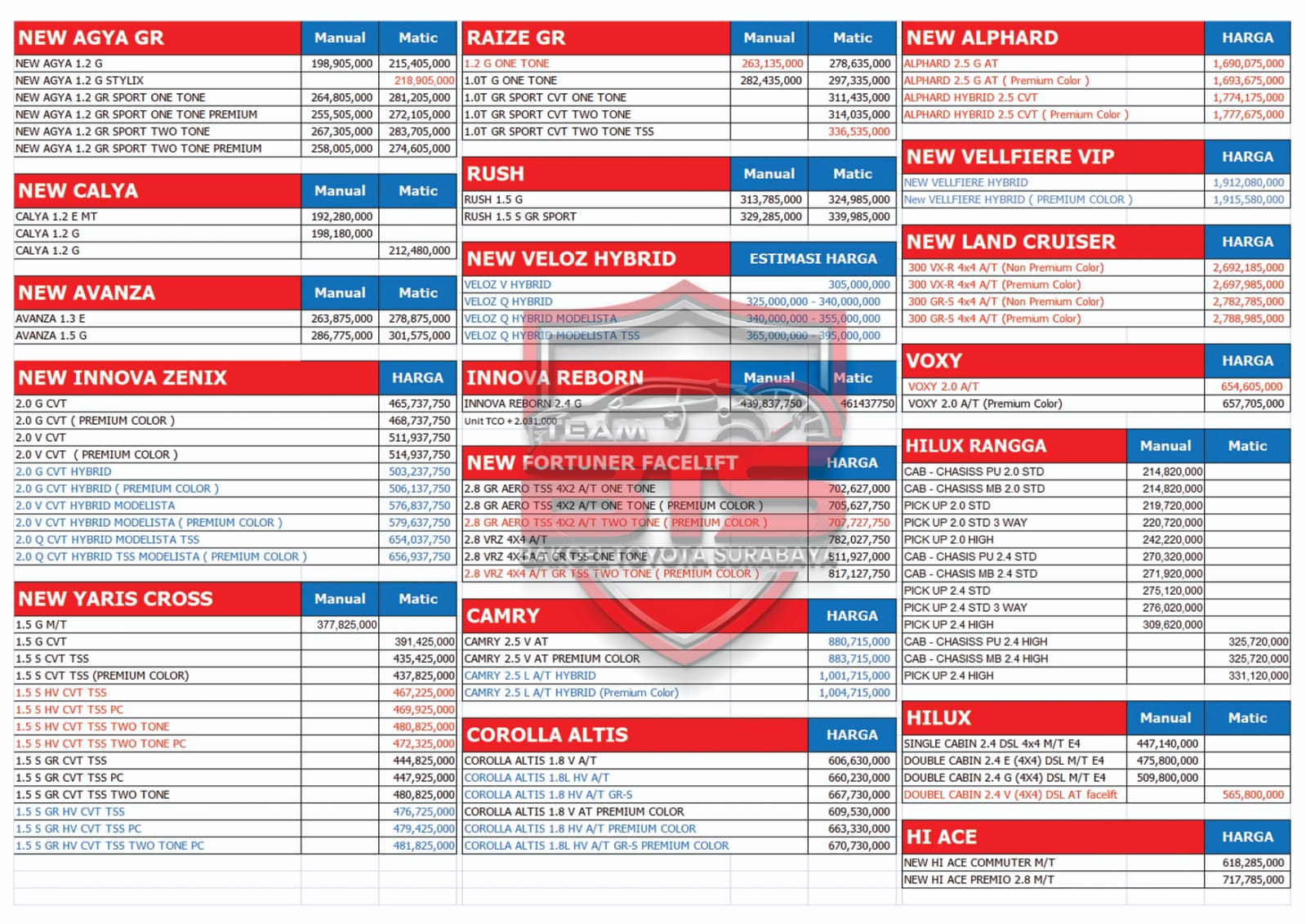 Price list harga Toyota Surabaya terbaru 2026
